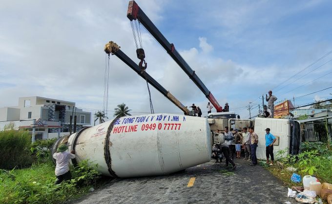 Khoảng 2h, xe phục vụ trộn bêtông công trình khi đi trên quốc lộ 63, đoạn qua phường Tân Xuyên, TP Cà Mau, bất ngờ trượt bánh sau đó lật ngang. Tài xế bị thương nhẹ, ôtô nằm chắn hết hai làn đường khiến xe không thể chạy qua.